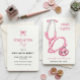 Elegant Pink Stethoscope Nurse Doctor Graduation Einladung