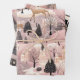 Three elegant pink holiday wrapping paper sheets featuring a delicately illustrated pink village dotted with roaming deer.