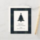 Modern Christmas card featuring a timeless design with a Christmas tree with a muted navy blue and green plaid pattern along with the greeting, "Merry Christmas". Use the template to add your personalized message.