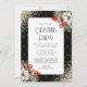 This elegant black Christmas party invitation featuring gold confetti, white poinsettia, holly with red berries and other winter botanicals is perfect for Christmas parties, holiday soirees, corporate events, holiday cocktail parties and more. Easily personalize this invitation with your party details.