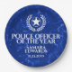 Celebrate the top performer or high achiever in your company, industry, or profession with these paper plates, which feature customizable fields for achievement, honoree's name, and date of celebration on a prestigious royal blue marble background.