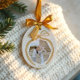 Feiern Sie die Magie der Feriensaison mit unserem eleganten Polka Dot Weihnachtsbogen Foto Sake Keramik Ornament. Dieses wunderschön gestaltete Ornament ist so konzipiert, dass Sie Ihre wertvollsten Erinnerungen mit Eleganz und Anmut einfangen können. Ein bezaubernder Polka Dot Bogen mit anmutig drapierenden Band-Schwänzen, ergänzt durch verstreute Polka-Punkte, die eine spielerische Touch hinzufügen. Persönlich gestaltet, mit einem wellenförmigen Foto, das das perfekte Schaufenster für Ihr Foto bietet, und einem Jahr und einem zweiten Foto auf der Rückseite. Dieses Ornament eignet sich ideal zum Gedenken an Ansammlungen, erste Feste und unvergessliche Feierlichkeiten. Es ist sicher, eine Touch von Eleganz und Nostalgie in Ihre festliche Baumdekoration zu bringen. Design und Kunstwerke von Moodthology Papers