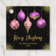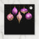 Add a touch of festive sophistication to your holiday party favors with this elegant Christmas tag featuring five purple and gold ornaments against a sparkling black background. Perfect for tying onto treat bags, gift boxes, or table settings, this customizable tag includes space for your family name and year. A stylish way to personalize your celebration and impress your guests.