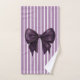 Embrace timeless style with this elegant bathroom set, showcasing a beautiful deep purple bow centered on a backdrop of bold vertical stripes. The soothing lavender and white stripes provide a clean, classic foundation, while the detailed bow adds a focal point of rich color and texture. This set is designed to offer both exceptional comfort and decorative appeal, making your bathroom a more inviting and stylish place.