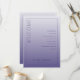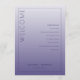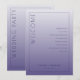 This elegant wedding program features a vertical layout with a gradient lavender background, transitioning from light to dark shades. The design is minimalistic, focusing on clean typography with a mix of serif and sans-serif fonts that create a sophisticated balance. A bold "WELCOME" text runs vertically along the left side, while the right side lists ceremony elements in an organized manner. Customizable placeholders for names and dates are included at the bottom, making it perfect for personalization. The overall mood is serene and formal, ideal for a chic and modern wedding celebration.