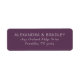 These return address labels feature a simple, elegant layout with centered text on a deep purple background. The clean serif font conveys formality and sophistication, making them perfect for formal occasions or professional use. With customizable placeholders for names and addresses, these labels offer versatility while maintaining a timeless aesthetic. Their understated design ensures clarity and readability, ideal for adding a polished touch to your mailings.