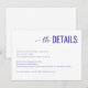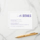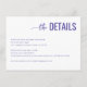 This wedding enclosure card features a clean, minimalist design with ample white space and a centered layout. The title "the DETAILS" is elegantly presented in a mix of cursive and bold sans-serif fonts in deep purple, creating an eye-catching contrast against the white background. The body text uses a simple serif font in black for clarity, providing essential information about room reservations and shuttle details. The overall style is modern and professional, conveying elegance and simplicity, making it perfect for formal events like weddings.