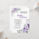 Elegant Purple Watercolor Floral Wedding Invitation with script font typography and heart accent.