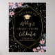 Celebrate your graduation party with this cute party sign! A trendy, watercolor pink and purple summer floral design with elegant typography and gold glitter confetti, plus a gold geometric terrarium frame on a blush pink background. The design includes space for all of the graduate's details.