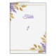 👉 Help guests find their seats easily with this self-standing folded table number card. Features elegant purple wisteria florals on both sides.