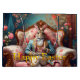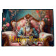 Vintage rabbit in elegant attire lounging in an armchair sipping a cup of tea