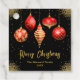 Add a touch of festive sophistication to your holiday party favors with this elegant Christmas tag featuring five red and gold ornaments against a sparkling black background. Perfect for tying onto treat bags, gift boxes, or table settings, this customizable tag includes space for your family name and year. A stylish way to personalize your celebration and impress your guests.