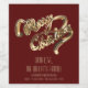 Elegante Imitate Gold Foil Script Frohe Weihnachten auf Bordeaux Red Background, Wein oder Sekt Flaschen Label, Einmaliges Weihnachtsgeschenk für Familie, Freund, Kollegen und Geschäftspartner. Name, Adresse und Website hinzufügen.