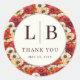 This design features a vibrant floral pattern with rich reds, oranges, and whites, creating an elegant and celebratory atmosphere. The circular motif at the center is adorned with bold typography, surrounded by delicate flowers that add a touch of romance and sophistication. Perfect for wedding thank-you notes, this design captures the joyous spirit of love and gratitude. Its customizable elements allow you to personalize it for your special occasion, making it a heartfelt keepsake for guests.