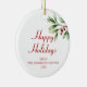 Elegant Red Berries Green Company Happy Holidays Keramik Ornament