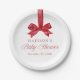 Elegant Red Bow Christmas Baby Shower Pappteller