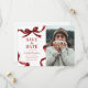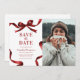 Announce your upcoming graduation in timeless style with this elegant Save the Date announcement. Featuring a photo of the graduate on a clean white background, framed by a stylish red watercolor bow and ribbon border, this design perfectly blends classic sophistication with modern charm.