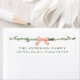Fügen Sie Ihrer Urlaubspost eine festliche Touch mit diesem eleganten Rücksendelabel mit einer Aquarellkiefer-Garage, die durch einen rot-weißen Bogen in der Mitte hervorgehoben wird. Ihr Familienname und Ihre Rücksendeadresse werden unten in klassischer Typografie gedruckt, wodurch ein abgestimmtes Aussehen entsteht, das perfekt mit den passenden Urlaubskarten kombiniert wird. Eine charmante Art, Weihnachtskarten, Einladungen für Feiertage und den saisonalen Briefwechsel zu kleiden.