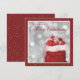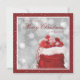 Elegante rote Weihnachtskarte mit einem Sack voller Weihnachtsgeschenke. Personalisieren Sie diese moderne Urlaubskarte ganz einfach online.