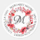Elegant Red Floral Script Monogram Address Runder Aufkleber