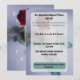 Elegant wedding invitation with a romantic red floral background and soft botanical accents.