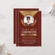 Celebrate your graduate in style with this luxurious red and gold graduation ceremony invitation. The classic laurel wreath, bold typography, and refined layout create a prestigious look inspired by academic excellence. Featuring a centered graduate photo, elegant gold accents, and beautifully framed details, this design is perfect for honoring the Class of 2024 and inviting loved ones to a memorable celebration.