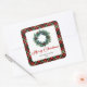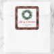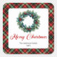 Elegant Red Green Plaid Pine Wreath Holiday Labels Quadratischer Aufkleber