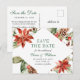 Elegant Red Poinsettia Pine Wedding Save the Date Ankündigungspostkarte
