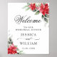 Elegantes Red Poinsettia Pine Fur Wedding Welcome Poster.