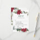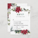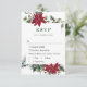 Elegante Red Poinsettia Watercolor Pine Fir Wedding RSVP Card.