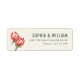 This return address label features a modern minimalist design with two vibrant protea flowers in shades of red and pink, set against a clean white background. The elegant serif typography is well-spaced and complements the floral illustration, creating a sophisticated and balanced look. Perfect for formal occasions, this label combines natural beauty with classic style, making it ideal for weddings or special events. Customizable text allows you to personalize your mailing experience effortlessly.