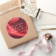 Elegante und luxuriöse Aufkleber mit glattem, rotem Satin-Hintergrund. Diese wunderschönen Aufkleber mit einem seidigen Satin-Look sind leicht mit jedem Namen, jeder Adresse oder jedem anderen Text personalisiert. Ideal für den Valentinstag, Engagements, Hochzeiten und Jubiläen. Dargestellt ist der große runde Aufkleber.