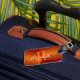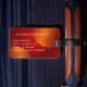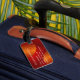 Erstellen Sie ein einzigartiges mit Monogramm Gepäckanhänger mit einem roten und goldfarbenen Mandala-Muster. Geben Sie in der Vorlage Ihren Namen, Ihre Adresse, Ihr Telefon und andere Kontaktinformationen ein.