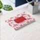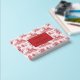 This elegant wedding guest book features a charming countryside theme with repeating illustrations of ornate houses surrounded by trees, all rendered in a rich red tone on a crisp white background. The design centers around a maroon box with sophisticated serif typography for custom names and date, adding a touch of formality to the layout. The vintage-inspired print effect evokes nostalgia, while the warm color palette creates an inviting atmosphere perfect for celebrating love and commitment. Ideal for couples seeking a classic yet romantic aesthetic, this guest book is a beautiful addition to any wedding celebration.