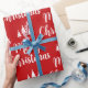 Elegantes und modernes rot-weißes "Frohe Weihnachten" Packpapier mit einem Baummuster. Ideal, um Ihre Weihnachtsgeschenke in dieser Winter- und Feiertagssaison einzupacken.