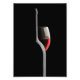 The rich, deep red hue of the wine inside the glass adds a splash of vibrant color, contrasting beautifully with the monochrome tones of the bottle and the dark backdrop. The glass appears poised and elegant, as if caught in a moment of anticipation—ready to be enjoyed. The subtle lighting highlights the smooth curves and reflective surface, emphasizing the clarity of the glass and the lusciousness of the wine within.