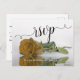 Diese schöne RSVP-Karte wird es Ihren Gästen erleichtern, auf Ihre Hochzeitseinladung zu reagieren. Die Rose ist in Gold oder Gelb gehalten und spiegelt sich in einem Wasserbecken mit Wellen und Wellen wider. Die Kalligrafie mit einem laksigen Schriftzeichen ist ebenfalls sehr schön. Die Rückseite ist so gestaltet, dass Ihre Gäste Platz zum Ausfüllen und Zurückkehren haben, um ihnen die Wahl der Mahlzeiten sowie die Anzahl der Gäste, die anwesend sein werden, mitzuteilen.