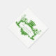 Einwegservietten aus Papier, die für den Hochzeitsempfang, die Dusche von Paaren oder das Abendessen von Proben geeignet sind, zeichnen sich durch eine grüne Printform aus, die Rollen, Blätter und königliche Krone mit einem Bereich, in dem Braut- und Bräutigams Namen und Hochzeitstag hinzufügen können, auf weißem Hintergrund.