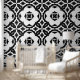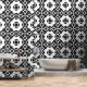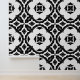 Diese Tapete mit Schale und Stock zeichnet sich durch ein gewagtes und kompaktes Design aus, das moderne und klassische Elemente mühelos kombiniert. Das Muster zeigt einen auffallenden Schwarz-Weiß-Kontrast, der einen eleganten visuellen Effekt erzeugt. Verbundene geometrische Formen, einschließlich Diamanten und stilisierte Blumenmotive, bilden ein sich wiederholendes Muster über die Oberfläche. Dieses raffinierte Design kann jeden Raum in ein Statement-Stück verwandeln, ohne den Raum zu überfordern. Diese Tapete ist perfekt für diejenigen, die ihre Innendekoration mit minimalem Aufwand erweitern möchten. Sie verleiht jedem Ambiente eine Touch von Eleganz und Modernität.