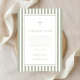 Elegant Religious Sage Green Boy Baptism Thank You Card.