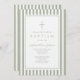 Elegant Religious Sage Green Boy Baptism Invitation. For best results upload a square image of the baby.