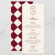 Elegant Retro Checkered Burgundy Wedding Menükarte