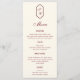 Wedding menu card featuring a hand drawn frame with your personalized information (monograms and meal courses) in elegant script and serif fonts on a cream background. On the back there is also a digitally hand drawn checkered background in matching burgundy and cream colors. You can find more matching products from this stunning wedding collection in our store.