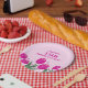 Retro Tulpe Blume mit lebendiger Typografie auf rosa Hintergrund Geburtstagspapier Teller. Elegantes Party. Passen Sie den Text an, um Ihren Anzug zu erfüllen!