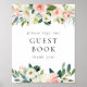 Elegant Rosa Blumengrün Gastbuch-Zeichen Poster