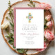 Personalisierte elegante Rosa Blumenkreuz Erste Heilige Kommunion Einladung.