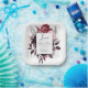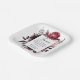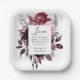 Elegante Hochzeitspapier-Teller zeigen eine wunderschöne florale Aquarellfarbe, modernes Rahmendesign mit einer dunkelrosa Rose und dunkelgrauem Blattwerk. Es enthält die Namen des Ehepaares und einen Teil der Christlichen Bibelversen 1 Korinther 13:7-8, "LIEBE... hofft alles, hält alles, Liebe versage nie."