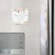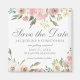 Ein elegantes Blumenstrauß mit rosa Torfbäumen und elfenbeinfarbenen Blume aus Aquarell umrahmt diese wunderschöne, blumengeschmückte Frühjahrsheirat Save the Date Magnet. Inmitten der pfirsichfarbenen Reihe von Blume, die das wunderschöne graue Drehbuch auf diesen eleganten Viereckmagneten umgeben, schmücken die Blätter von Salbei.
