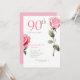 Rosa Rose Elegant 90. Geburtstag Party Einladung.
