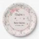 Elegant rosa Rosen mit Schmetterlinge Babydusche Pappteller